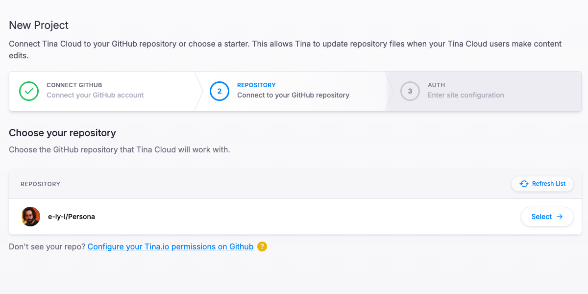 First, we nee to sign up a account on Tina Cloud. Then connect to Git repository and specify the custom domain.