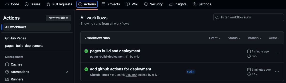 Next, I started thinking about where to deploy it. As a beginner, I wanted a platform that is (at least initially) free and preferably automates the deployment process as much as possible. After some research, I found that Github Pages fits my initial needs well. Since I’m building a technical blog, it makes sense to host it together with my Github projects.